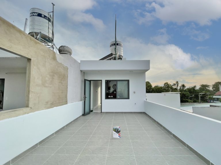 Giống như nhiều ngôi nhà phố hiện đại, mái của nhà 4x18m được thiết kế bằng bê tông cốt thép, chịu tải tốt, thuận tiện cho việc lắp đặt các thiết bị như bồn nước và dàn nước nóng năng lượng mặt trời. Khu vực sân thượng phía trước và sau rộng rãi, cho phép gia đình tổ chức các buổi tiệc ngoài trời vui vẻ.