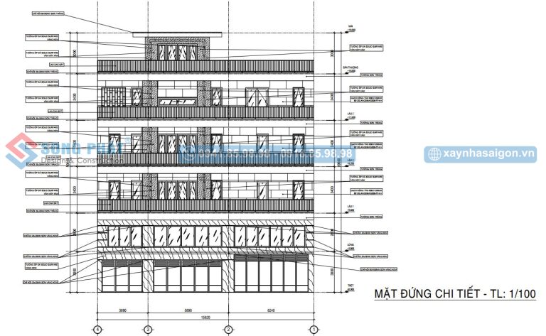 Công năng khoa học cho thiết kế nhà trệt lửng 3 lầu sân thượng 16x4m7
